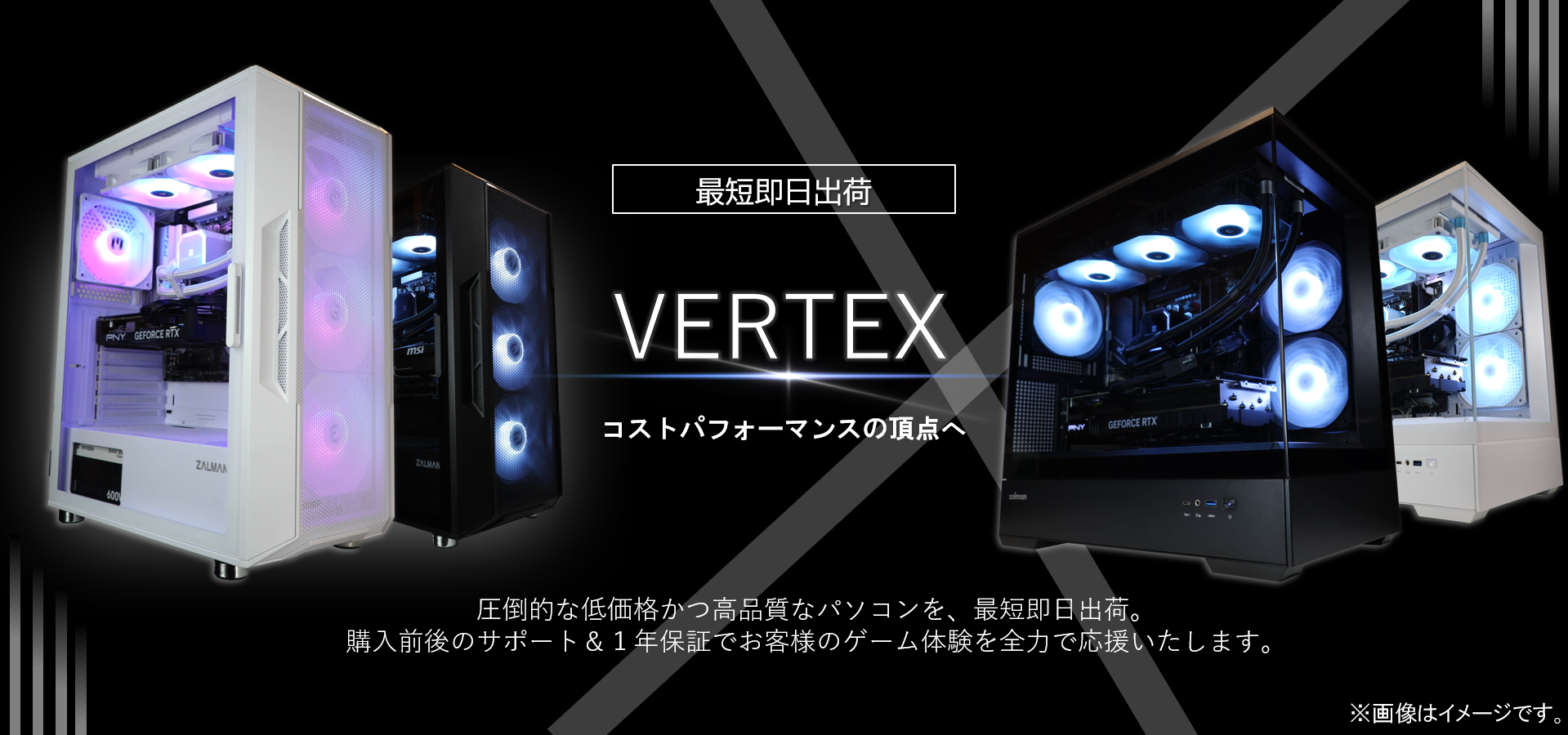 RyzenシリーズのCPUを採用しコストパフォーマンス重視で構成されたパーツで品質はそのままに、高いコストパフォーマンスの頂点を実現しました。