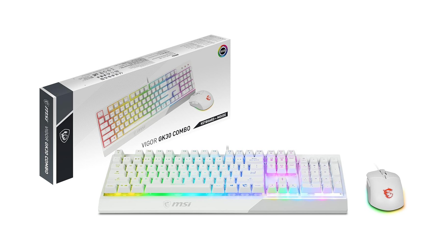 MSI Vigor GK30 Comboは、正確なタイピングを可能にするメカニカルライクなプランジャースイッチを採用したゲーミングキーボードとマウスのセットです。キーボードはRGB LEDエフェクトを搭載し、専用ソフトでカスタマイズが可能。